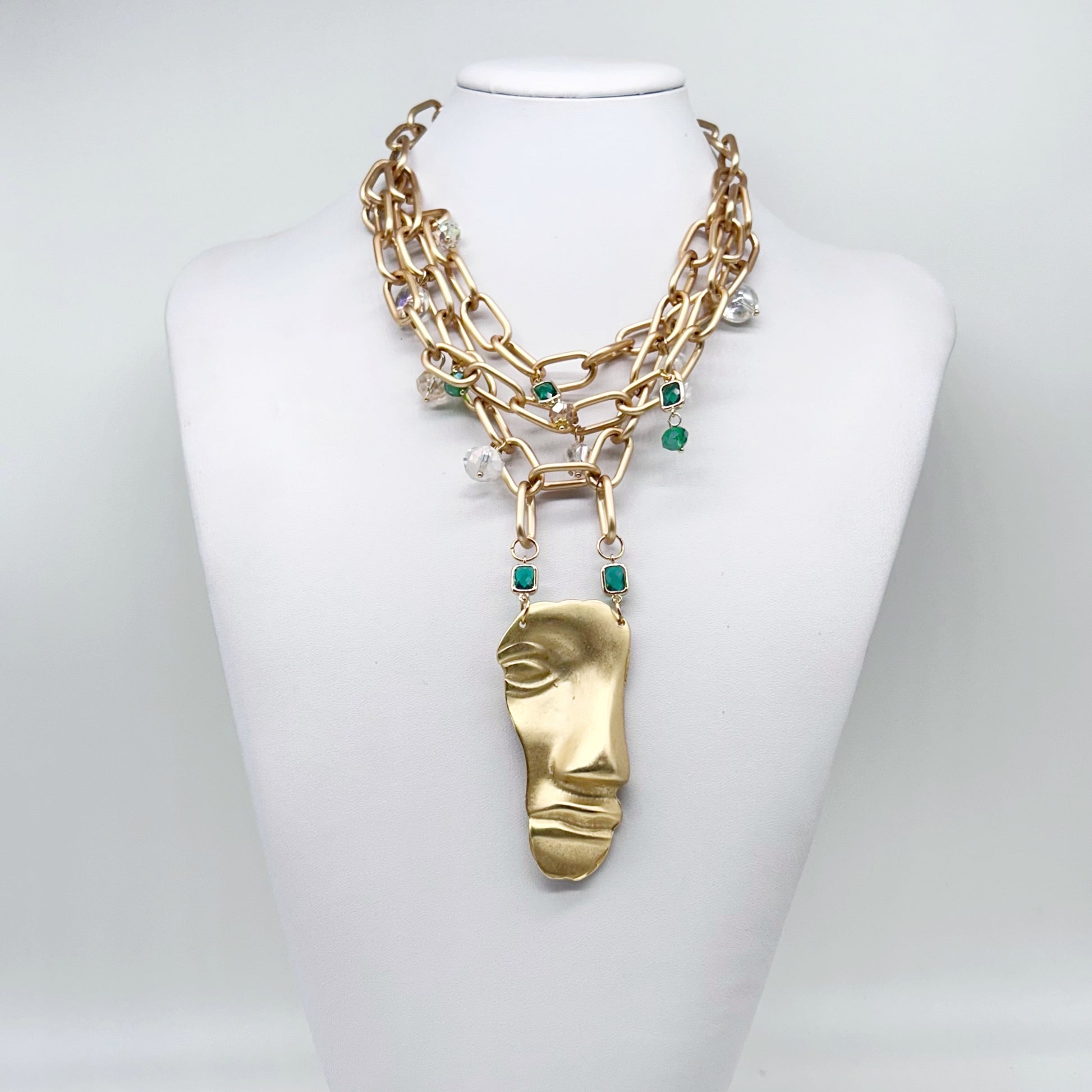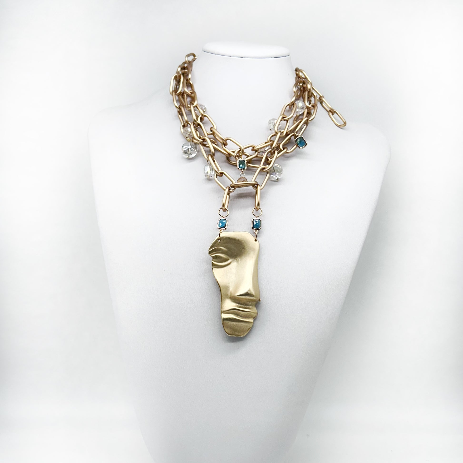 il ciondolo centrale Con il volto di donna È un omaggio alla nostra bellezza